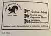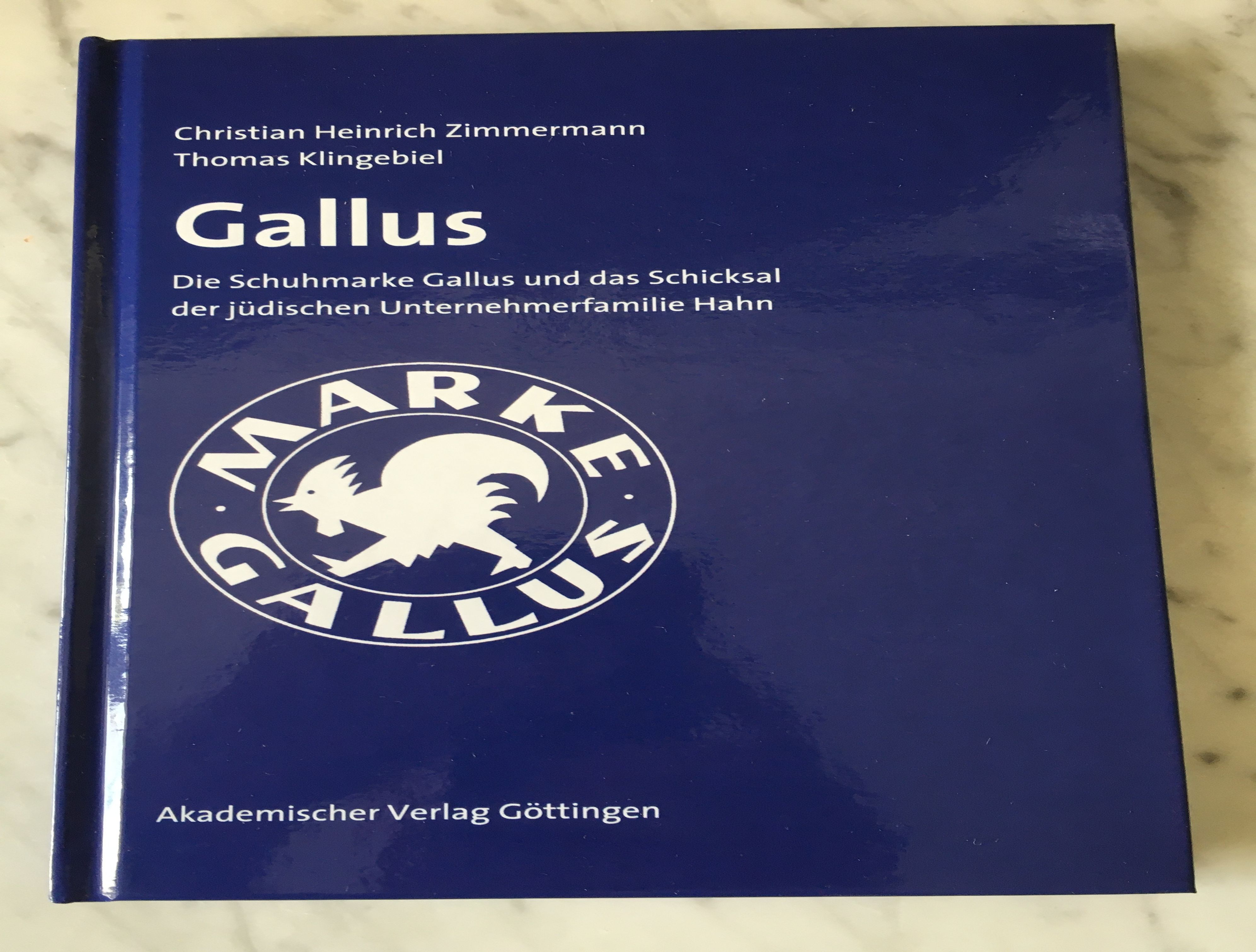 Göttingen. GALLUS, EINE Schuhmarke der deutsch-jüdischen Familie Hahn. 1934 findet man die obige Anzeige zu der Schutzmarke Gallus mit dem scherenschnittartig reduzierten laufenden Hahn mit Stiefeln.